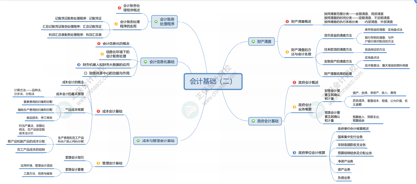 下面是2023初级会计《初级会计实务》思维导图:第二章 会计基础的相关内容,一起来学习吧!