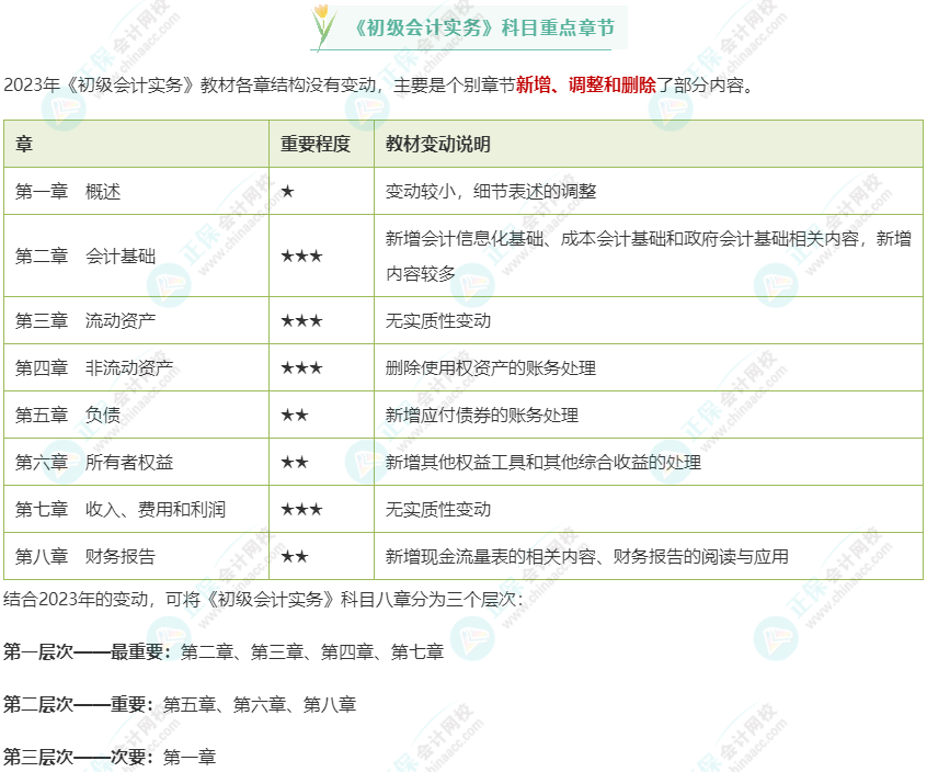 正保会计网校教研团队也对《初级会计实务》以及《经济法基础》各章节进行了分析,以下为具体详情: