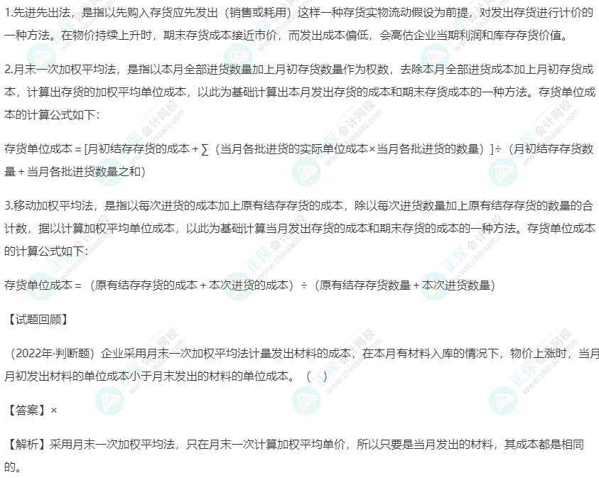 我们一起来学习2023年《初级会计实务》高频考点:发出存货的计价方法。本考点属于《初级会计实务》第三章流动资产第四节存货的内容。