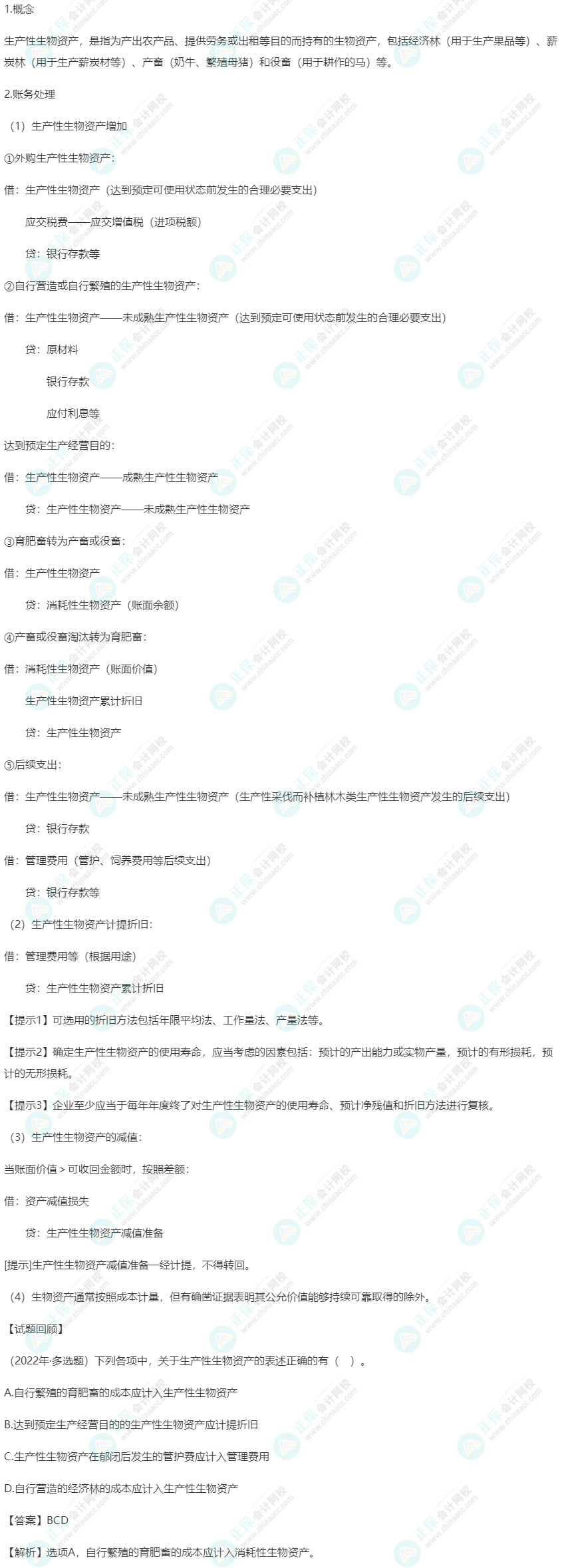 【高频考点】生产性生物资产