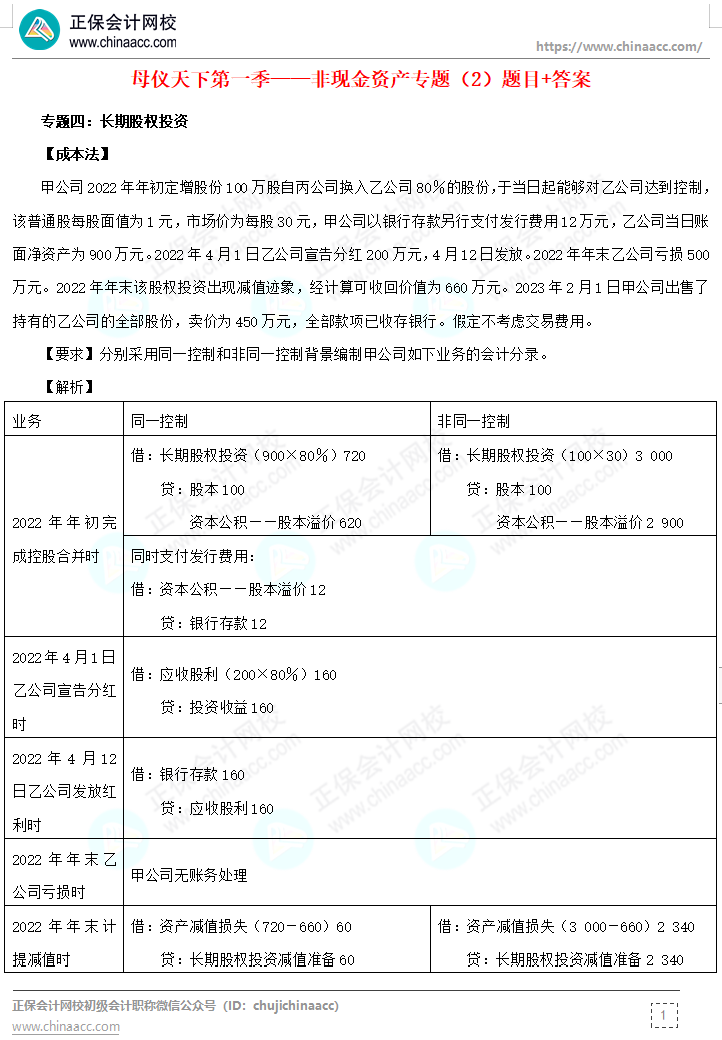 高志谦老师初级会计“母仪天下”——非现金资产专题(2):长期股权投资、无形资产、投资性房地产试题答案解析来喽,赶快来下载!