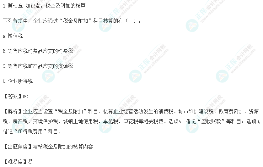 【点评】本题考核“税金及附加的核算”知识点。该题目所涉及知识点在下列正保会计网校(www.fawtography.com)2023年初级职称《初级会计实务》辅导中均有体现: