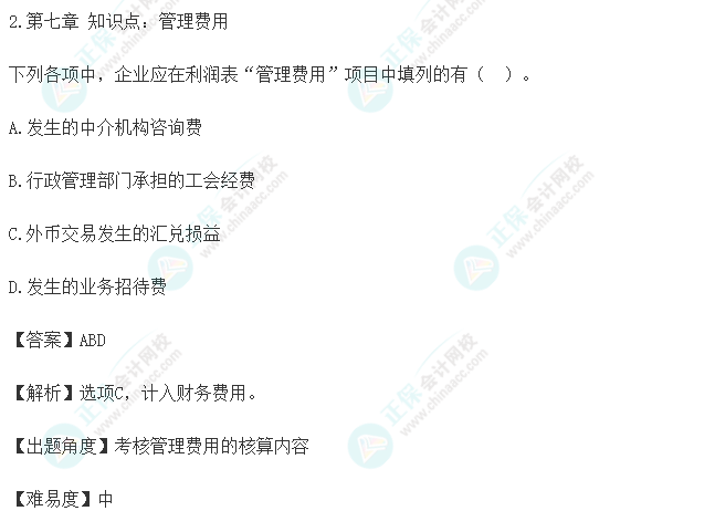 【点评】本题考核“管理费用”知识点。该题目所涉及知识点在下列正保会计网校(www.fawtography.com)2023年初级职称《初级会计实务》辅导中均有体现: