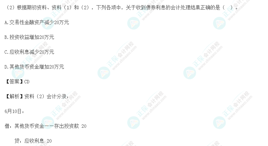 【点评】本题考核“交易性金融资产的持有”知识点。该题目所涉及知识点在下列正保会计网校(www.fawtography.com)2023年初级职称《初级会计实务》辅导中均有体现: