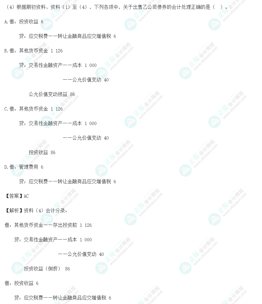 【点评】本题考核“交易性金融资产的出售”知识点。该题目所涉及知识点在下列正保会计网校(www.fawtography.com)2023年初级职称《初级会计实务》辅导中均有体现: