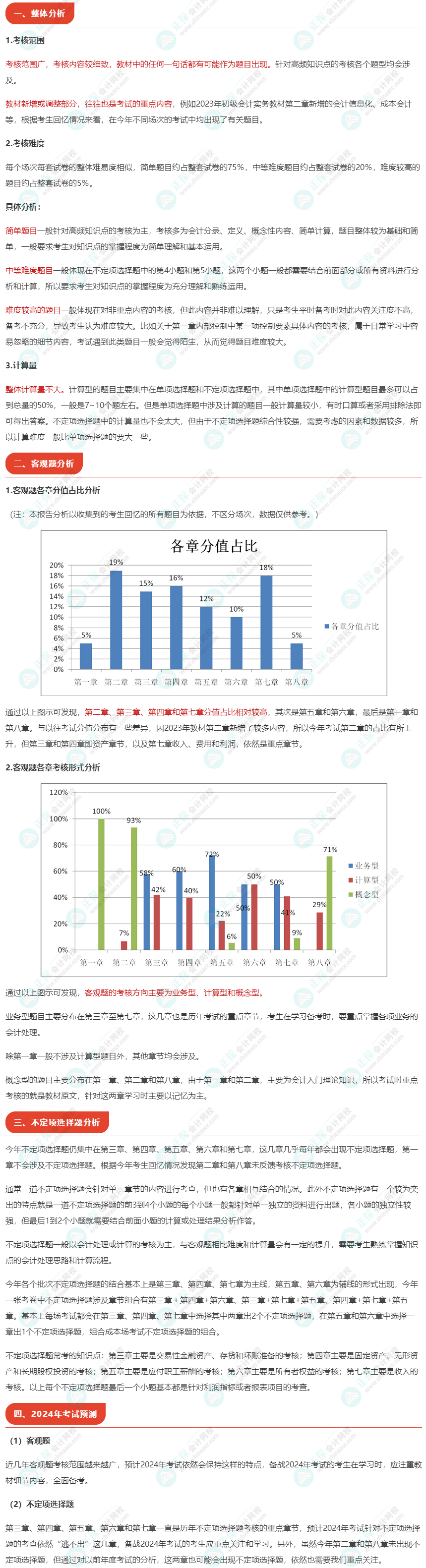 2023年初级会计考试已经结束啦,以下是正保会计网校教研团队整理的《初级会计实务》科目2023年初级会计考试试题分析&2024年考试预测,希望对各位2023年&2024年初级会计考生均有所帮助!