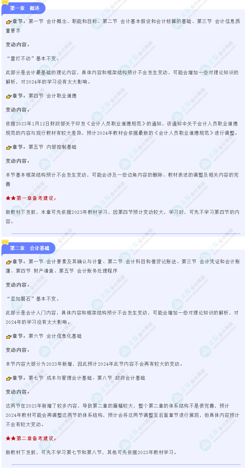所以,正保会计网校综合整理了2024年教材变化预测以及备考建议,不知道如何备考的小伙伴赶快看过来吧~