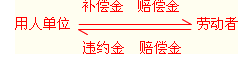 | 赔偿金 | 用人单位和劳动者由于自己的过错给对方造成损害 | 法定或约定(有过错,具有惩罚性和赔偿性) | 二者之一 |