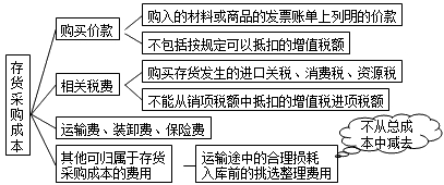 (1)购入的存货,其成本包括:买价、运杂费(包括运输费、装卸费、保险费、包装费、仓储费等)、运输途中的合理损耗、入库前的挑选整理费用以及按规定应计入成本的税费和其他费用。