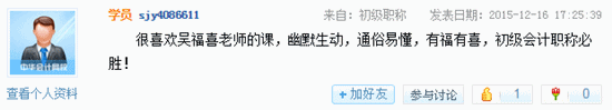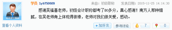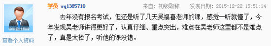 三尺莲台,三寸舌,三寸笔,三千桃李,在他的谆谆教导下,2015年的初级职称考试取得的双百的傲人战绩,让我们与吴老师一起携手共创2016 年初级职称考试佳绩!
