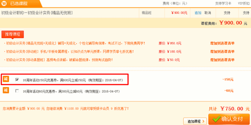 为回馈广大学员多年来对网校的支持,正保会计网校特在网校成立16周年之际推出“16周年校庆 购课满立减”活动,购买2016年初级会计职称辅导课程满300元,立享优惠,最高可减2000元,快来抢购吧。马上去抢优惠券>>