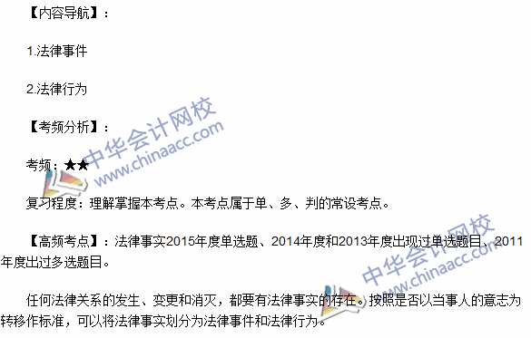 2016年初级会计职称备考已经进入最后的冲刺阶段,为帮助考生们高效备考,正保会计网校教学专家根据丰富的教学经验,整理了初级会计职称各科的高频考点。下面是《经济法基础》第一章总论第一节法律基础中法律关系的内容。