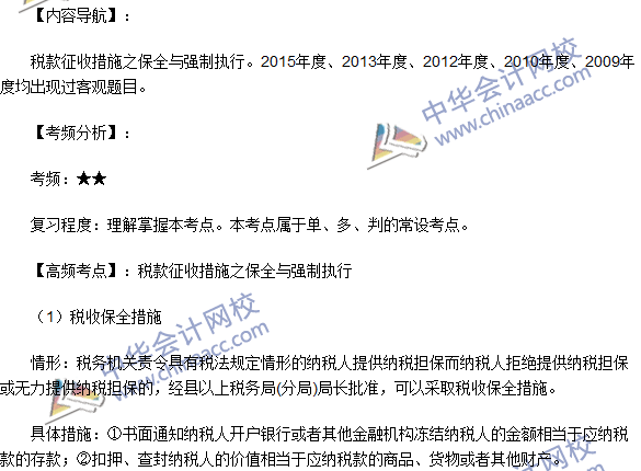 2016年初级会计职称备考已经进入最后的冲刺阶段,为帮助考生们高效备考,正保会计网校教学专家根据丰富的教学经验,整理了初级会计职称各科的高频考点。下面是《经济法基础》第七章税收征收管理法律制度第三节税款征收与税务检查的内容。