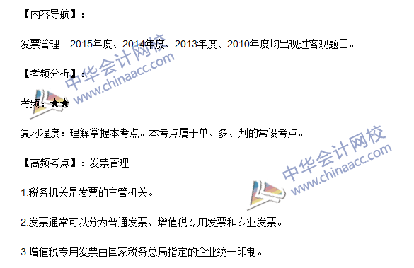 2016年初级会计职称备考已经进入最后的冲刺阶段,为帮助考生们高效备考,正保会计网校教学专家根据丰富的教学经验,整理了初级会计职称各科的高频考点。下面是《经济法基础》第七章税收征收管理法律制度第二节税务管理的内容。