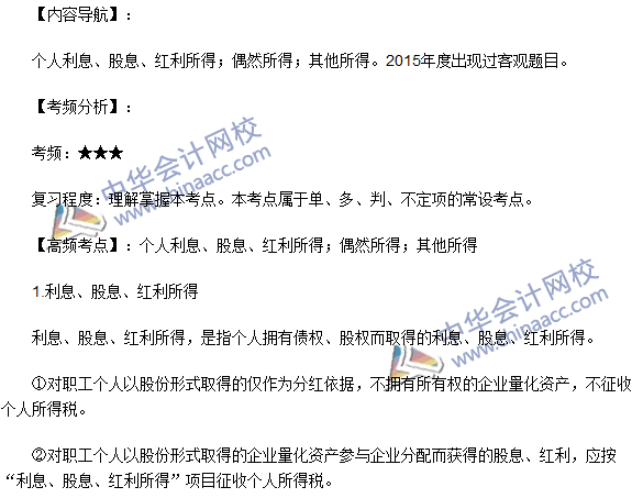 2016年初级会计职称备考已经进入最后的冲刺阶段,为帮助考生们高效备考,正保会计网校教学专家根据丰富的教学经验,整理了初级会计职称各科的高频考点。下面是《经济法基础》第五章企业所得税、个人所得税法律制度第二节个人所得税法律制度的内容。