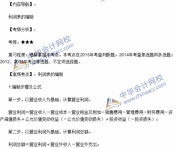 2016年初级会计职称备考已经进入最后的冲刺阶段,为帮助考生们高效备考,正保会计网校教学专家根据丰富的教学经验,整理了初级会计职称各科的高频考点。下面是《初级会计实务》第七章财务报告第三节利润表的内容。