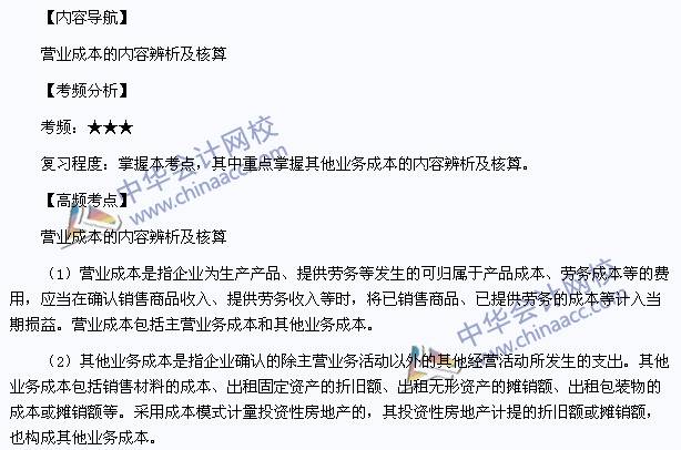 我们一起来学习2013年初级会计职称《初级会计实务》高频考点:营业成本的内容辨析及核算。本考点属于《初级会计实务》第五章费用第一节营业成本的内容。