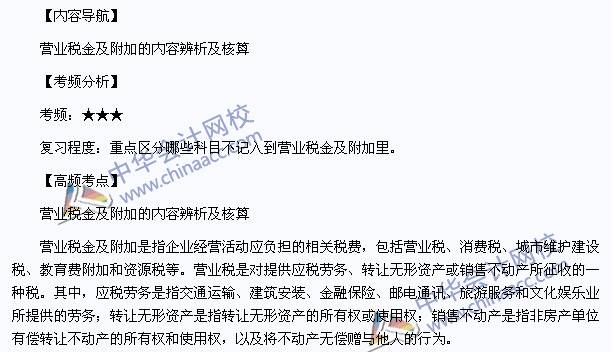 我们一起来学习2013年初级会计职称《初级会计实务》高频考点:营业税金及附加的内容辨析及核算。本考点属于《初级会计实务》第五章费用第二节营业税金及附加的内容。