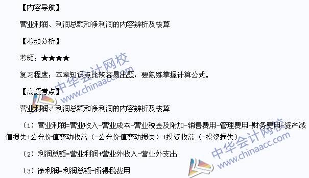 我们一起来学习2013年初级会计职称《初级会计实务》高频考点:营业利润、利润总额和净利润的内容辨析及核算。本考点属于《初级会计实务》第六章利润第一节营业外收支的内容。