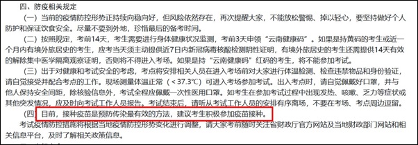 云南:目前,接种疫苗是预防传染最有效的方法,建议考生积极参加疫苗接种。