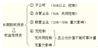 长期股权投资是指企业持有的对其子公司、合营企业及联营企业的权益性投资以及企业持有的对被投资单位不具有控制、共同控制或重大影响,并且在活跃市场中没有报价、公允价值不能可靠计量的权益性投资。