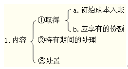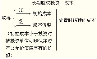 “成本”(1)取得投资时的初始成本,(2)初始成本小于投资时应享有被投资单位可辨认净资产公允价值份额,对初始成本的调整,(3)处置时结转的成本。