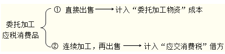 委托加工物资收回后,直接用于销售的,委托方应将受托方代收代缴的消费税计入委托加工物资的成本;委托加工物资收回后用于连续生产应税消费品,按规定准予抵扣的,委托方应按已由受托方代收代缴的消费税款,借记“应交税费——应交消费税”科目。