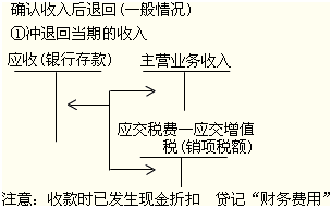 2.已确认销售商品收入的售出商品发生销售退回的,除属于资产负债表日后事项外,一般应在发生时冲减当期销售商品收入,同时冲减当期销售商品成本,如按规定允许扣减增值税的,应同时冲减已确认的应交增值税销项税额。如该项销售退回已发生现金折扣的,应同时调整相关财务费用的金额。