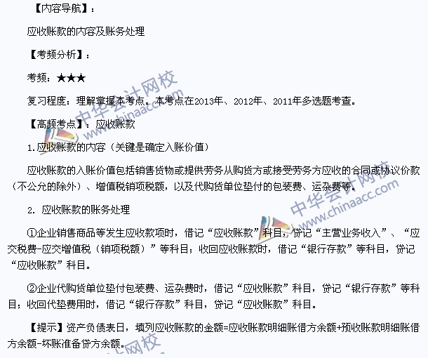 我们一起来学习2014初级会计职称考试《初级会计实务》高频考点:应收账款。本考点属于《初级会计实务》第一章资产第二节应收及预付款项的内容。