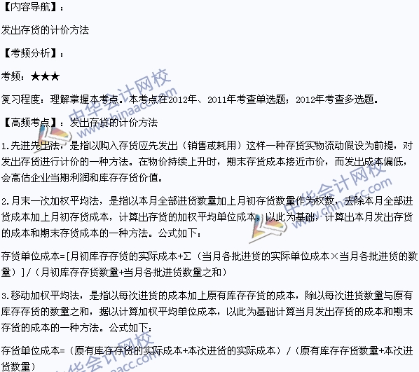我们一起来学习2014初级会计职称考试《初级会计实务》高频考点:发出存货的计价法。本考点属于《初级会计实务》第一章资产第四节存货的内容。