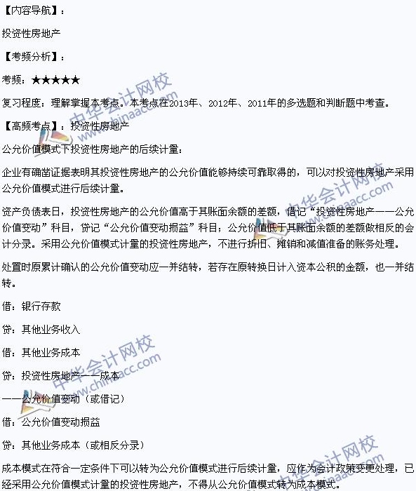 我们一起来学习2014初级职称考试《初级会计实务》高频考点:投资性房地产。本考点属于《初级会计实务》第一章资产第八节固定资产和投资性房地产的内容。