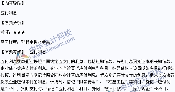 我们一起来学习2014初级会计职称考试《初级会计实务》高频考点:应付利息。本考点属于《初级会计实务》第二章负债第二节应付及预收款项的内容。