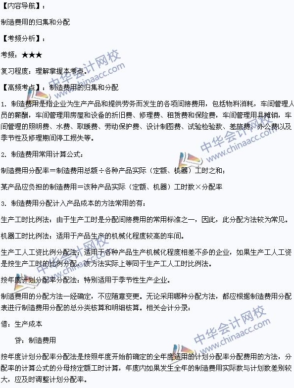 我们一起来学习2014初级会计职称考试《初级会计实务》高频考点:制造费用的归集和分配。本考点属于《初级会计实务》第八章产品成本核算第三节要素费用的归集和分配的内容。