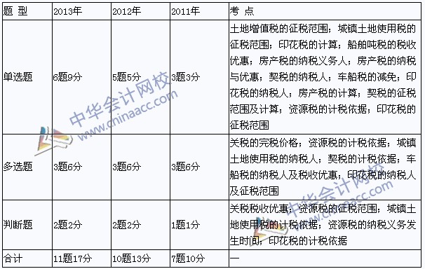 初级职称《经济法基础》历年主要考点及分值:第六章 其他税收法律制度