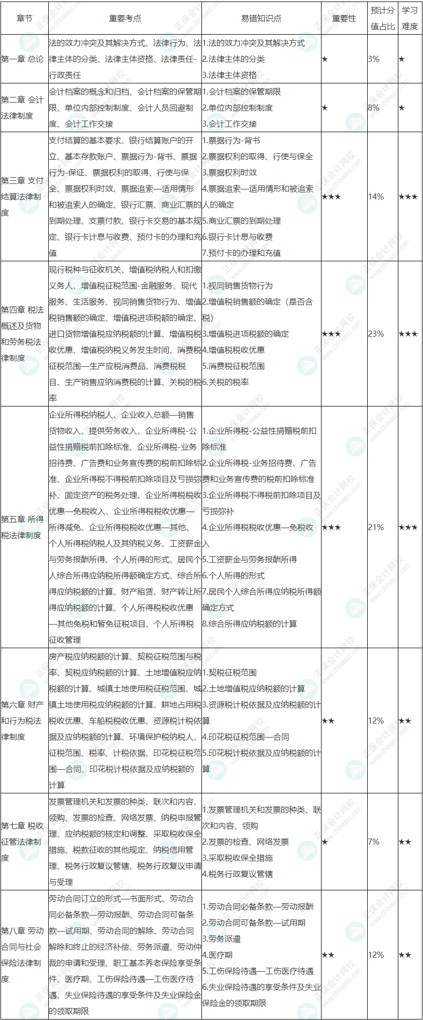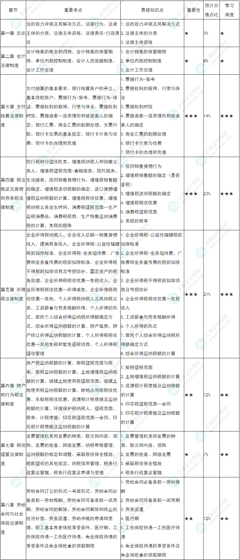 | 初级会计实务各章重要性 | 经济法基础各章重要性 |
