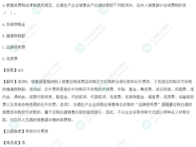 【点评】本题考核“价外费用”知识点。该题目所涉及知识点在下列正保会计网校(www.fawtography.com)2023年初级职称《经济法基础》辅导中均有体现:侯永斌老师【高效实验班】、【尊享无忧班】基础精讲第五技第17讲;杨军老师【超值精品班】基础精讲第五章第13讲;侯永斌老师2023年《经济法基础•应试指南》第258页知识点;张稳老师2023年《经济法基础•百考题》第69页知识点;练习中心开通的多选题。