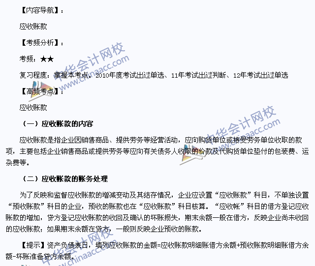 我们一起来学习2013初级会计职称《初级会计实务》高频考点:应收账款。本考点属于《初级会计实务》第一章资产第二节应收及预付款项的内容。