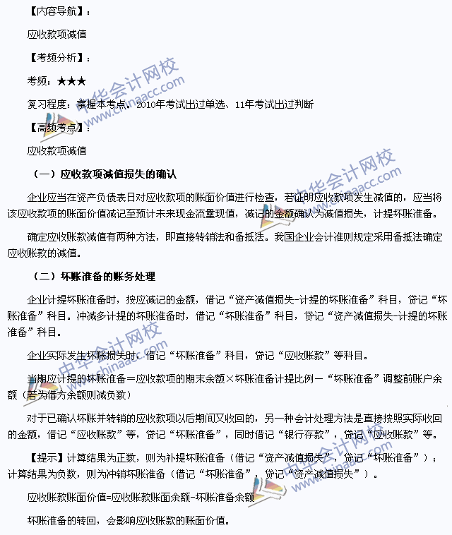 我们一起来学习2013初级会计职称《初级会计实务》高频考点:应收款项减值。本考点属于《初级会计实务》第一章资产第二节应收及预付款项的内容。
