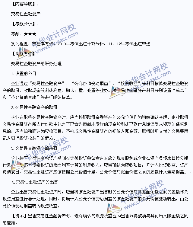 我们一起来学习2013《初级会计实务》高频考点:交易性金融资产。本考点属于《初级会计实务》第一章资产第三节交易性金融资产的内容。