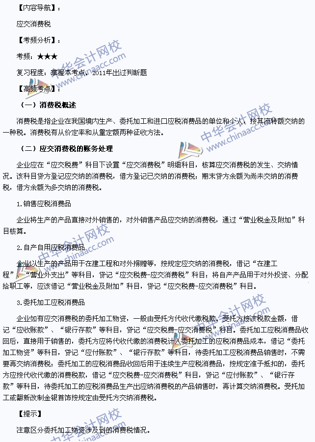 我们一起来学习2013《初级会计实务》高频考点:应交消费税。本考点属于《初级会计实务》第二章负债第四节应交税费的内容。