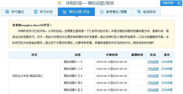 备注:目前模拟试题已经全部开通,请大家抓紧时间练习!