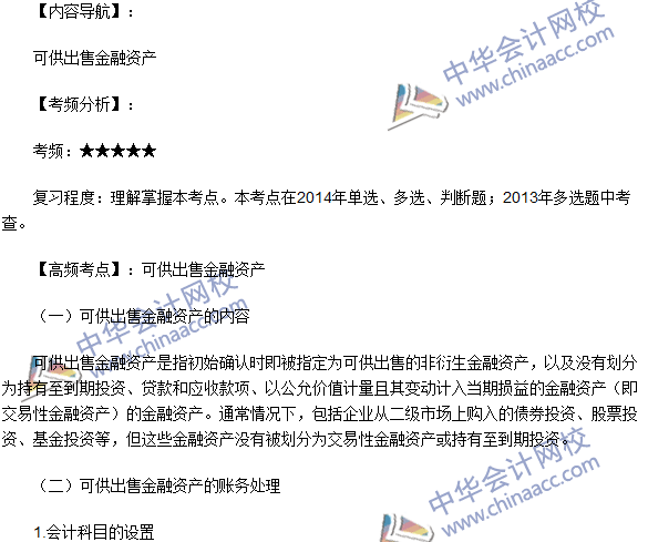 2016年初级会计职称备考已经进入最后的冲刺阶段,为帮助考生们高效备考,正保会计网校教学专家根据丰富的教学经验,整理了初级会计职称各科的高频考点。下面是《初级会计实务》第一章资产第七节可供出售金融资产的内容。