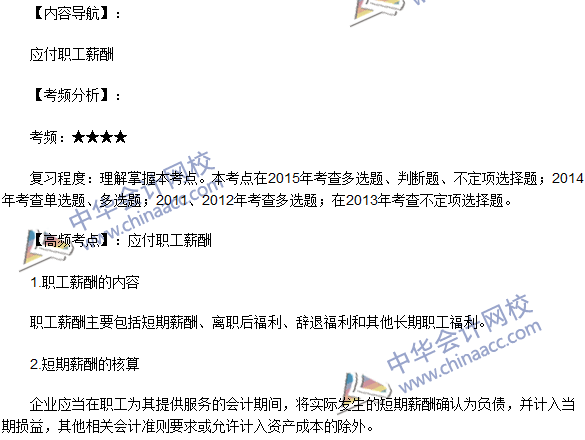 2016年初级会计职称备考已经进入最后的冲刺阶段,为帮助考生们高效备考,正保会计网校教学专家根据丰富的教学经验,整理了初级会计职称各科的高频考点。下面是《初级会计实务》第二章负债第三节应付职工薪酬的内容。
