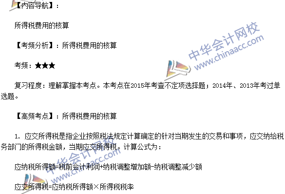 2016年初级会计职称备考已经进入最后的冲刺阶段,为帮助考生们高效备考,正保会计网校教学专家根据丰富的教学经验,整理了初级会计职称各科的高频考点。下面是《初级会计实务》第六章利润第二节所得税费用的内容。