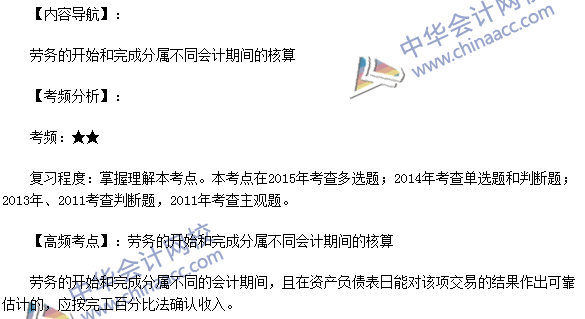 2016年初级会计职称备考已经进入最后的冲刺阶段,为帮助考生们高效备考,正保会计网校教学专家根据丰富的教学经验,整理了初级会计职称各科的高频考点。下面是《初级会计实务》第四章资产第二节提供劳务收入的内容。