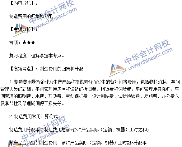 初级会计职称《初级会计实务》高频考点:制造费用的归集分配