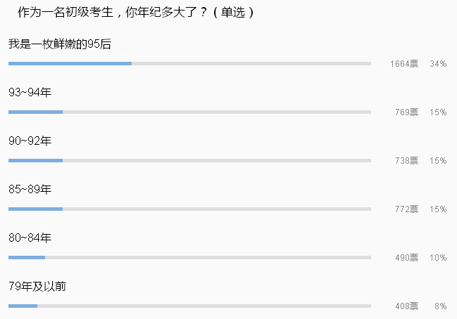 不过,近年来,初级考生整体来说是越来越年轻化了,毕竟,00后都已经成年了!90后都只能自称老阿姨了!憋说了,80后已哭晕在厕所…