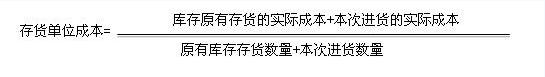 存货单位成本=[月初库存存货+∑(本月各批进货的实际单位成本×本月各批进货的数量)]÷(月初库存存货的数量+本月各批进货数量之和)