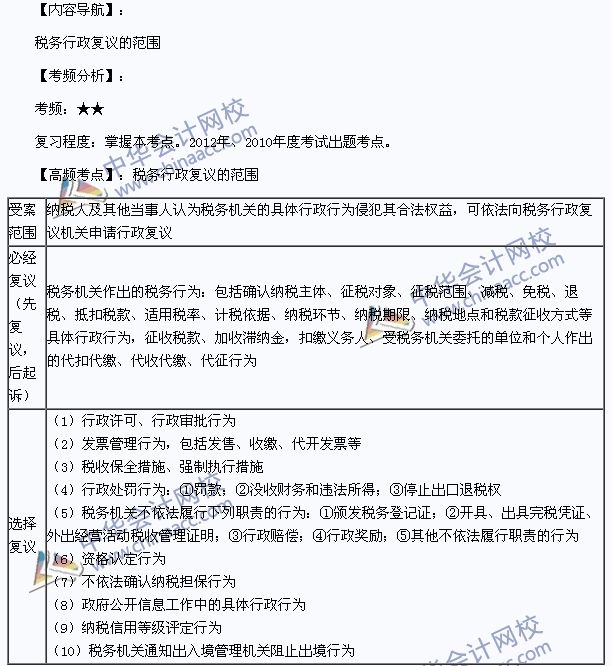 2013初级职称《经济法基础》高频考点:税务行政复议的范围