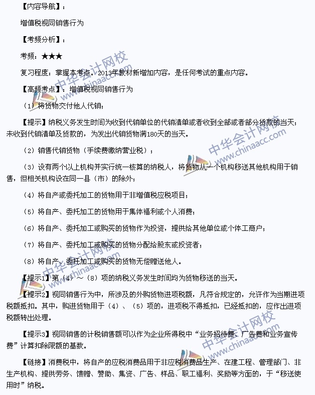 2013初级会计职称《经济法基础》高频考点:增值税视同销售行为